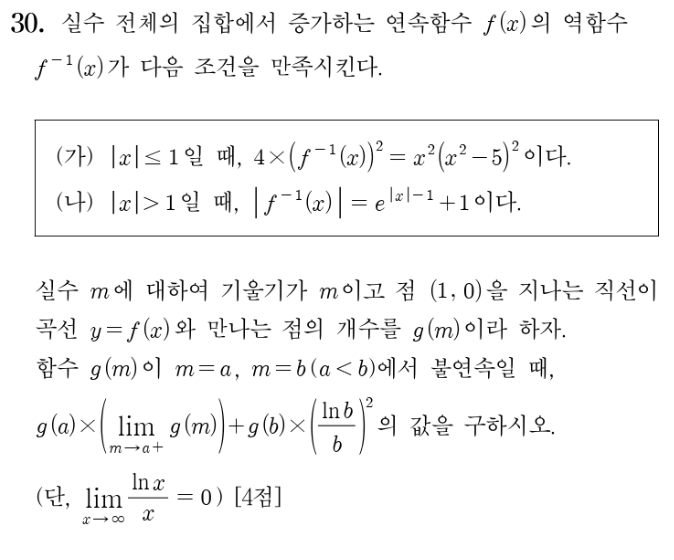 결국 이 문제는 미적분 킬러의 외피를 쓰고 있었지만, 그 알맹이는 “주어진 그래프 조각을 논리에 맞게 조립하여 증가함수를 만들 수 있는가?”를 묻는, 철저한 함수 개형 추론 문제였습니다.